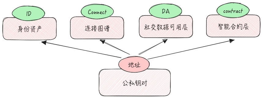 不管是身份资产、连接图谱,还是社交数据可用层上的数据、智能合约层都与用户所有的地址关联。用户持有的私钥控制所有这些资产或合约。